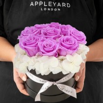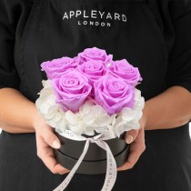 Lilac Rose & White Hydrangea Hatbox (Lasts Up To A Year)